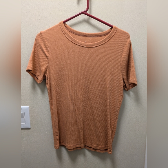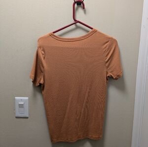 very comfy orange t shirt. just not a color that looks good on my personally. never worn out.