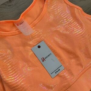 Orange iridescent leggings and top