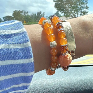 Orange jade and Baltic Amber beaded statement bracelet/Joy and light bracelet