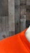 Vibrant orange t-shirt featuring a colorful skull and flower design. It is gently worn and is in excellent condition.