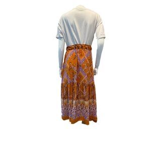 This stylish orange patterned maxi dress is perfect for any occasion. The vibrant color and unique design make it a standout piece in your wardrobe.