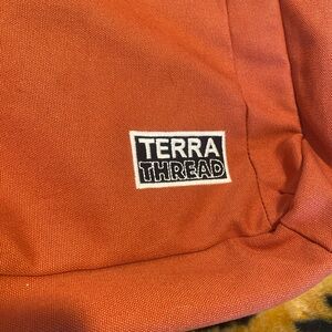 Never used Terra Thread back pack with brass hardware. 100% organic cotton. Made in India. Fair trade. Sustainable. . Ideal for work, school, or travel.