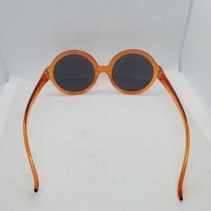 Orange sunglasses with orange sparkly smiling orange design case with handles.