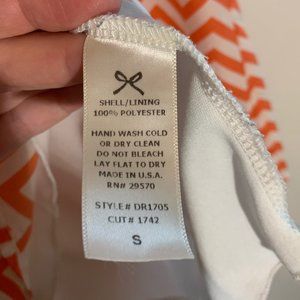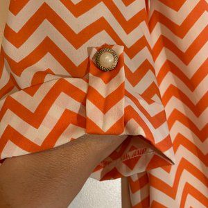 Beautiful orange/white chevron print long tunic or short shirt dress with boat neck and button detail on the sleeves. Lined (white).