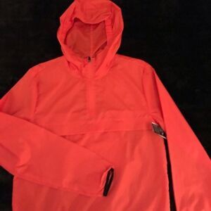 NWT Orange Wind Breaker/Rain Slicker wirh hood. Size large, inside pocket works as lightweight carry case