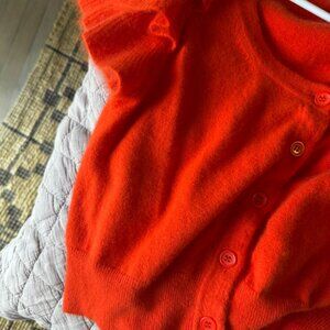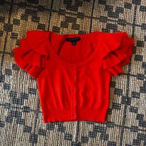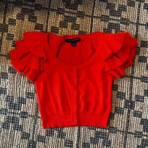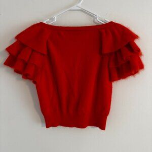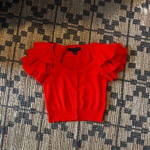 Orangey Cherry Red Cardigan Short Sleeve Ruffle Mohair