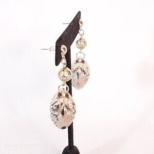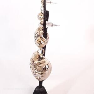 Orante Hollow Heart Dangling Earrings Gold Tone Floral Pattern
