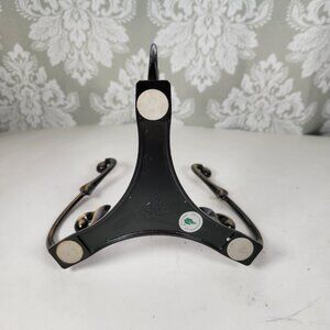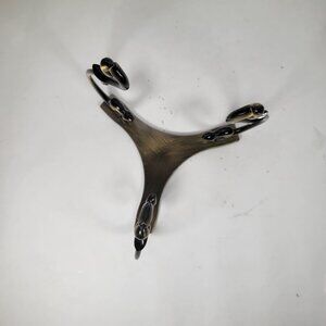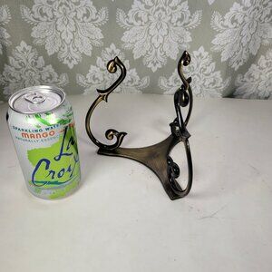 Ornate metal orb holder or candle base in a tripod scroll design. Made by PartyLite. This is the soliloquy / soliloque base in antique brass finish. Made in Taiwan. Measure 5.5" tall, 6.5" wide. In good condition - the metal shows minimal wear, one leg wiggles a little bit but is stable and attached - see photos and video for more details.