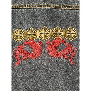 Orbit X Women's Size 12/14 Denim Vest Button-up Dragon Embroidery 100% Cotton