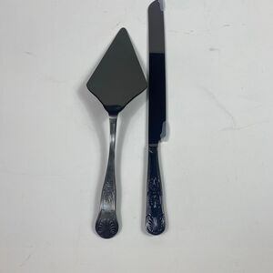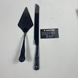 Orblue Black Cake Knife & Server Set Embossed Stainless Steel Gift Boxed NIB