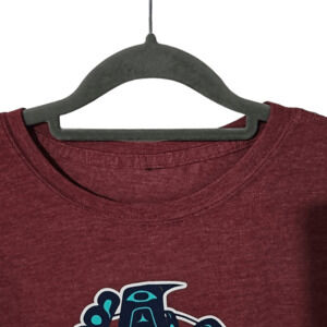 Orca Run 2020 Women's S/M Short Sleeve Graphic Tee Shirt Burgundy Maroon Whale