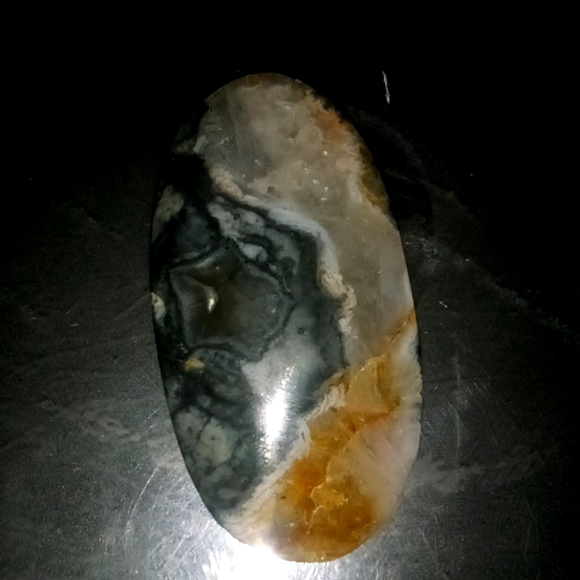 beautiful polished orca agate. almost 2 inches long. and an inch wide