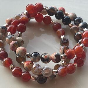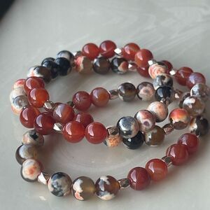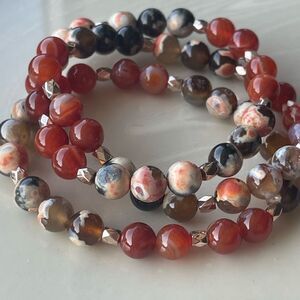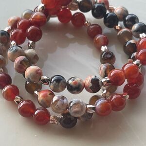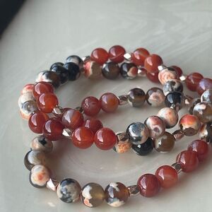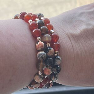 Orca agate carnelian ONE NEW stretch bracelet crystal stone orange rose gold