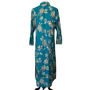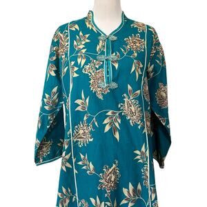 Orchid Vintage Asian Kaftan Dress Mumu Blue Floral Frog Closure Cotton Sz Medium. Preowned. Good condition. Comes from smoke free home. Ships out fast!