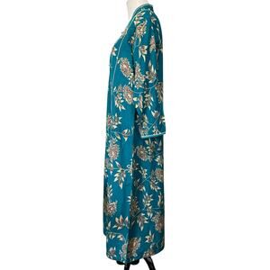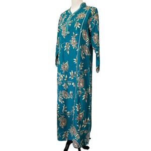 Orchid Vintage Asian Kaftan Dress Mumu Blue Floral Frog Closure Cotton Sz Medium