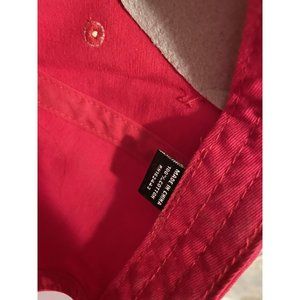 This one-size-fits-all hat is brand new and has not been personalized or signed. It is not a vintage item, but it is made in China with great attention to detail. Whether you're looking for a dad hat for yourself or a gift for a loved one, this Ordinary Crowns American Peace Symbol Strapback Cotton Dad Hat in Red is a great choice that will surely stand out.
