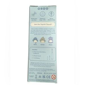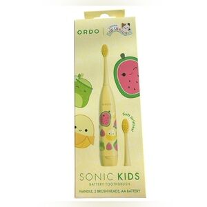 Ordo Sonic Kids Squishmallows Battery Toothbrush Bundle. Includes colors blue, & yellow. Each box contains handle 2 brush heads and AA battery