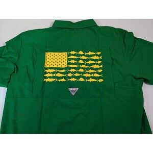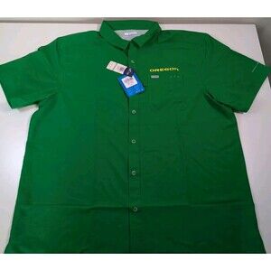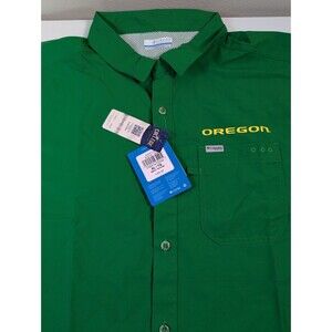 Show your support for the Oregon Ducks with this green Columbia PFG shirt. The shirt features the team's logo and is made with Omni Shield technology to keep you comfortable and dry during the game. It's a men's size XL and perfect for any fan of the team.