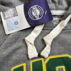 The product is a men's L gray Oregon Ducks hoodie featuring the official team logo, presented by Captivating Apparel. This officially licensed sweatshirt is perfect for male fans of the Oregon Ducks football team, showcasing their unique spellout logo in a stylish and comfortable design. Perfect for showing team spirit at games or during casual outings, this hoodie is a must-have for any fan looking to stay warm and stylish in support of their favorite team.