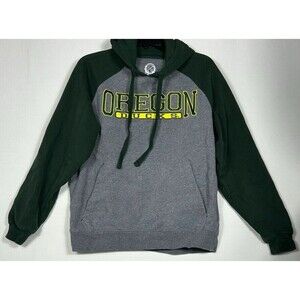 Oregon Ducks Hoodie Mens Small Gray Green Embroidered Sweatshirt Pockets
