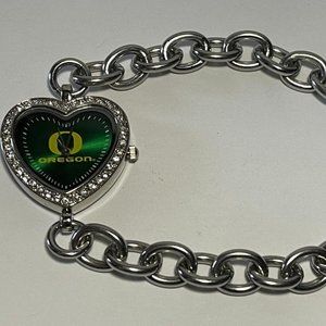 Oregon Ducks NCAA Women's Heart Stainless Steel Bracelet Watch by Game Time NEW