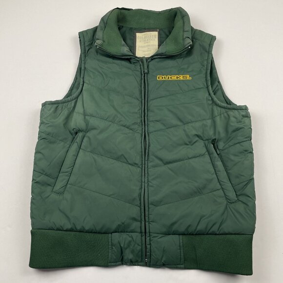 Oregon Ducks Puffer Vest Men’s M Green Full Zip Sleeveless Zip Pockets