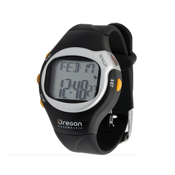 Oregon Scientific IHM-80004 One-Touch Heart Rate Monitor with Calorie Counter provides instant feedback while exercising has never been easier. Measure your heart rate and calories burned with the touch of a finger. Perfect for every type of workout, this sporty watch features a time and date display, daily alarm and chronograph stopwatch. The sleek plastic sport case is accented with a durable PU strap.