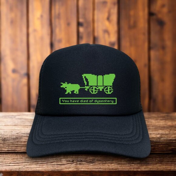 Oregon Trail You Have Died Of Dysentery Mens Trucker Hat Black Snapback 90s Cap