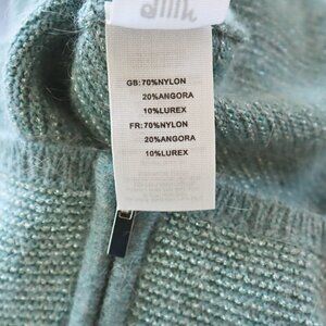 Orfeo Paris Aqua Silver Metallic Knit Cropped Zipper Trim Angora Bl Sweater S/M