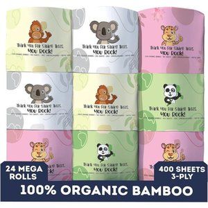 Organic Bamboo Toilet Paper 2.0 | 400 Sheets 3-Ply |24 Hypoallergenic Mega Rolls