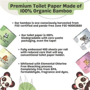 🧿🎋 100% ORGANIC BAMBOO AND PLASTIC-FREE - Our toilet paper is made of 100% organic bamboo and sustainably packaged with recycled boxes and cores. No pesticides or fertilizers used, and whitened by Elemental Chlorine Free Bleaching process.