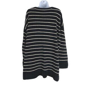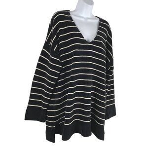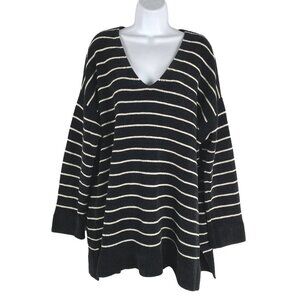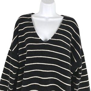 Organic Cotton Chenille Eileen Fisher Black and White Striped V-Neck Sweater