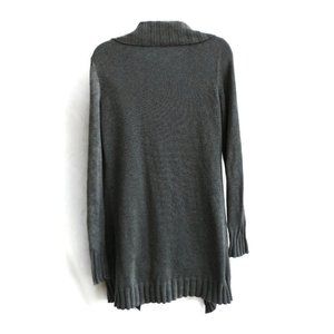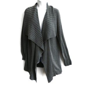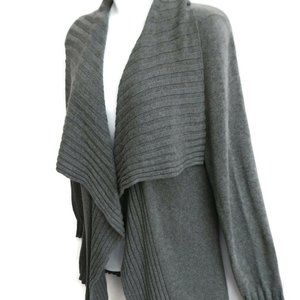 Organic Cotton Eileen Fisher Cardigan Long Waterfall Gray Ribbed Knit Cuffs Hem