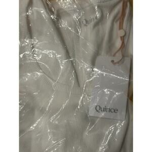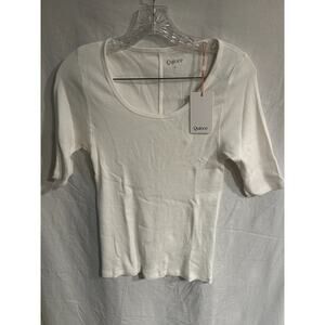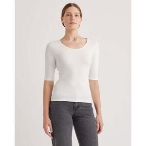 Quince White Tee Shirt Womens Small Organic Cotton Micro-Ribbed Elbow Sleeve NWT