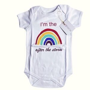 Organic Cotton Onesie 6-12M: "I'm the 🌈 After the Storm”