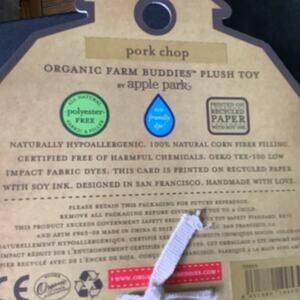 This adorable Organic Farm Buddies Pork Chop Pig plush toy is new with tags. It's hypoallergenic and filled with natural corn fiber, making it a safe and eco-friendly choice for your little one.