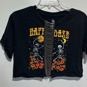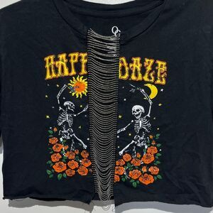 Organic Generation Women's Black Happy Daze Chain Skull Cotton Crop Top Small