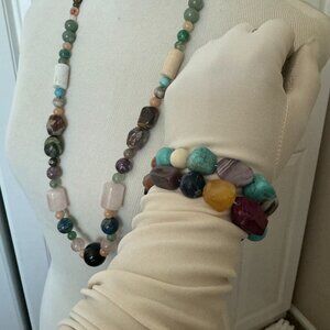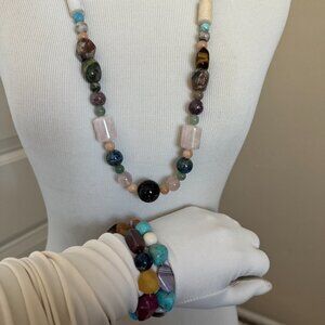 Organic Onyx, Jade, Rose Quartz Multi Stone Necklace | NWT