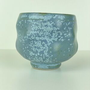 Organic Shape Freeform Pottery Cup Vase Artist Stamped H Blue Green Pedestal Bud