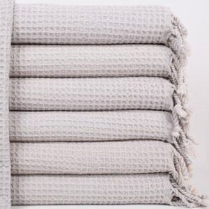 More beige than grey, have the matching bath towels but because of the dying process not an exact match