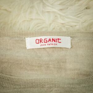 Organic by John Patrick Size Medium M Tan Beige Crew Scoop Neck Short Cap Sleeve