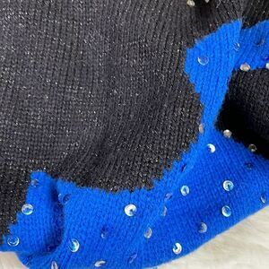 Organically Grown Ladies Vtg Bedazzled Sweater,Size Small,Black & Blue