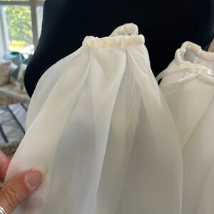 Elastic top for easy on and off ruffle bottom heavy organza would match a lot of different dresses. Would Fit size 6 to 12.