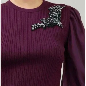 Organza sleeve Women's combo burgundy sweater size L