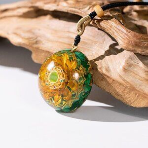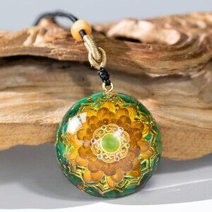 Our stunning Orgonite Necklace, featuring the powerful healing crystal malachite and the sacred symbol of the Flower of Life. This pendant necklace is not just a beautiful accessory but also offers abundant energy protection and promotes inner peace and well-being. This pendant is made with high-quality orgonite material, which is a combination of organic and inorganic materials. The orgone energy generated by this pendant helps to balance out the negative energies in your environment, promoting clarity, pea