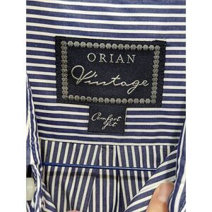 On the lookout for a shirt that perfectly encapsulates timeless style? Look no further than the Orian Vintage Men's Blue & White Striped Long-Sleeve Button-Down Shirt. Sized in L, this classic yet trendy piece will be the perfect addition to your wardrobe. Crafted from high-quality materials, this shirt guarantees both comfort and durability.