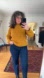 This Oriana Sweater is Made in Italy and constructed in 25% Wool/ 45% Acrylic/ 28% Nylon/ 2% Elastane dark marigold yellow. It features a mock neck with mixed knit pattern front with a row of fringe and boxy silhouette. This is lightweight, cozy, slouchy, oversized, autumnal, cottagecore, boho, soft, office casual , weekend layering vibes.
