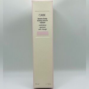 Experience soothing relief with Oribe's Serene Scalp Soothing Leave-On Treatment. This cream-colored formula calms and nourishes your scalp, providing comfort and care.