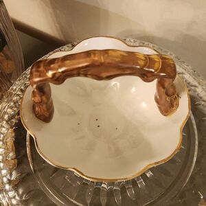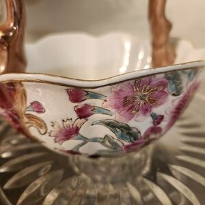 Oriental Accent Bowl with Chic Handle Asian closinssire Gold painted Floral