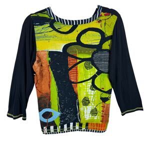 Orientique Naturally Australian Colorful Abstract Print 3/4 Sleeve Blouse Size S